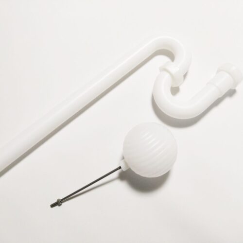 浮き球とは、トイレタンク内の水量を調整している玉状の装置です。 浮き球は水量が増え水かさが上がると同時に浮いていき、これにより排水後の給水を止めています。 また、排水によって浮き球が下がると給水が行われ、適切な水位に戻ることで給水が停止されます。